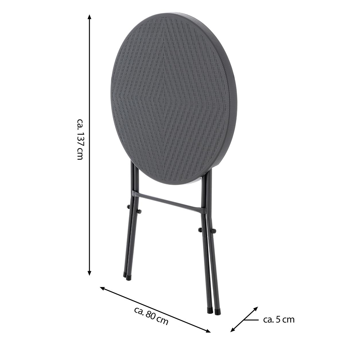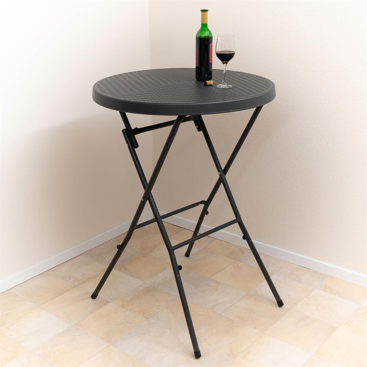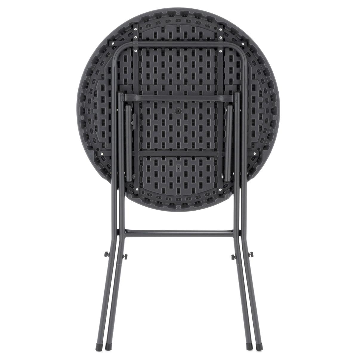 Tento stůl na stání se dá rychle složit a zve vás k uvolněnému posezení na zahradních večírcích, firemních oslavách, veletrzích nebo jiných setkáních. Když se nepoužívá, lze jej kompaktně složit pro snadné skladování. Jeho extrémně nízká hmotnost také usnadňuje přepravu. Šedý povrch imitující ratan dodává stolu elegantní vzhled